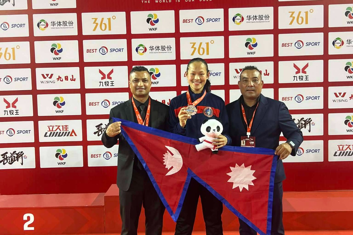 काठमाडौँ । चीनमा सम्पन्न डब्लुकेएफ कराते वान प्रिमियर लिगमा नेपालकी एरिका गुरुङले रजत पदक जितेकी छन् । ...