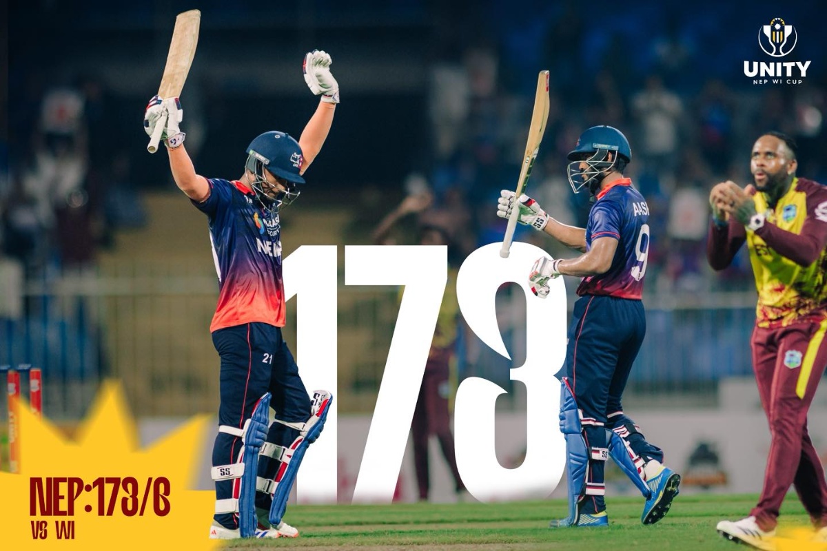 नेपालले वेस्ट इन्डिजलाई दियो १७४ रनको लक्ष्य,  आशिफ र सन्दीपको अर्धशतक