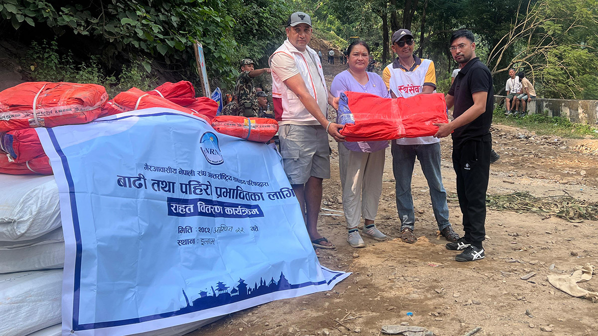 गैरआवासीय नेपाली संघ (एनआरएनए)ले नेपाल रेडक्रस सोसाइटी इलाम जिल्ला शाखा र रेडहर्स फुटबल क्लबको सहकार्यमा असोज २३ गतेदेखि विभिन्न चरणमा राहत वितरण गरेको हो । नेपाल रेडक्रस सोसाइटीको इलाम शाखामार्फत वडा नम्बर ६ को बालन र घोषमा र मंगलबारे, सिधिथुम्का, शान्तिडाँडा, माइपोखरी एकतप्पा, दानाबारी उपशाखामार्फत थप राहत  वितरण गरिएको हो ।
